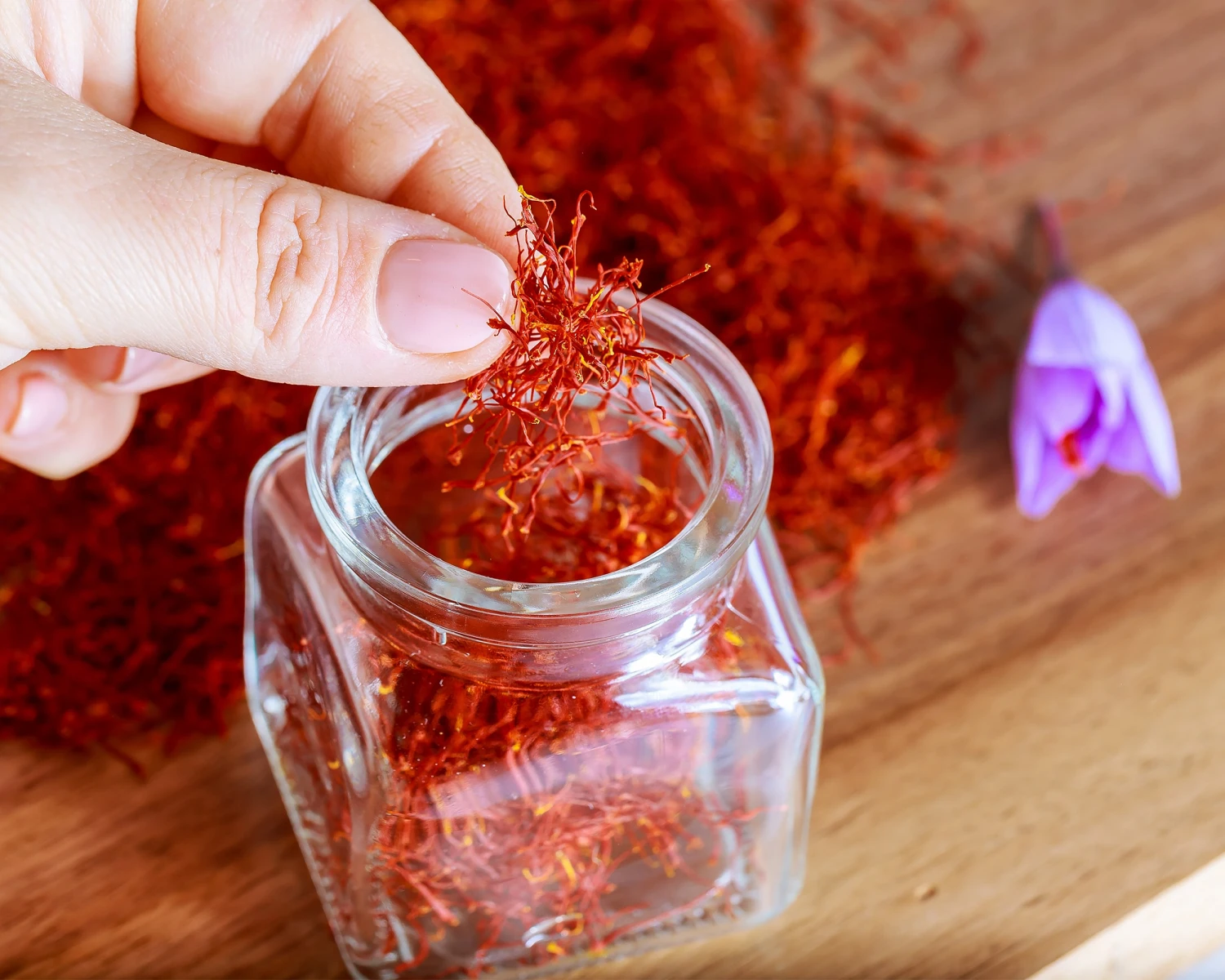 “It takes around a 150 of these small Crocus sativus plants (and some careful harvesting and drying) to nett about one gram of the saffron spice.”