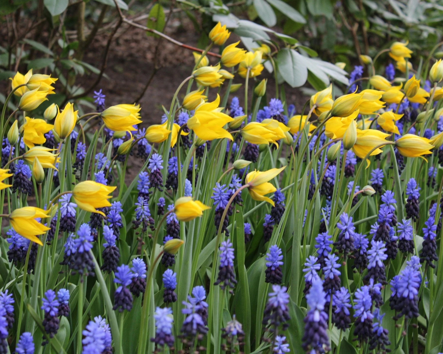 A symphony in blues and purples, Muscari latifolium shades from tips that are the blue of a summer sky to a rich purple-blue at the base of each flower spike. And despite its remarkable looks, it’s as easy to grow as any other grape hyacinth. Not only will you get a carpet of blue blooms in spring, they’ll return each year if you let them. Lovely on their own, in containers, massed garden beds or as an edging, Muscari latifolium is also the perfect way to make the most of your tulips. Yellow provides the most striking contrast, but white and blue or pink and blue are combinations that are just as pretty.