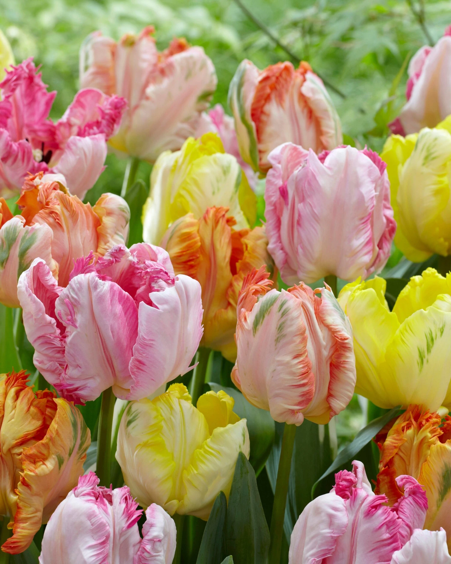 Despite their tropical looks, these ‘Pastel Parrots’ are just as hardy and low maintenance as any other tulip. Parrot tulips are fascinating from the moment they form their flower buds right up until the petals start to fall. They take their time to fully unfurl and look great throughout the entire process, treating you to weeks of interest. Amazing in the garden and also as a cut flower, just a few of these impressive blooms make a huge impact in an arrangement.